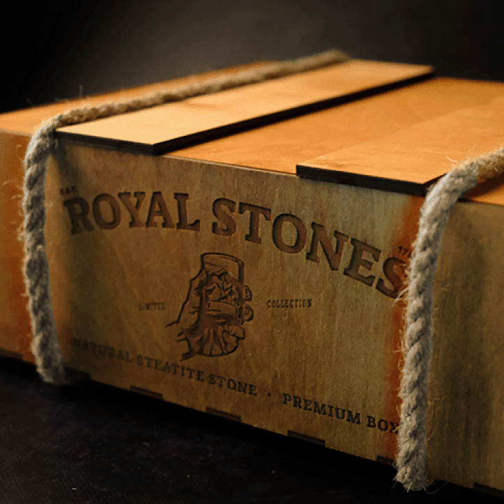 Royal Stones виготовляють з різних матеріалів, включаючи сталь, шунгіт, зелений нефрит, але найчастіше зі стеатиту, також відомого як талькохлорит або мильний камінь. Форми для охолоджувачів льоду можуть бути різними, але звичні кубики найпопулярніші.